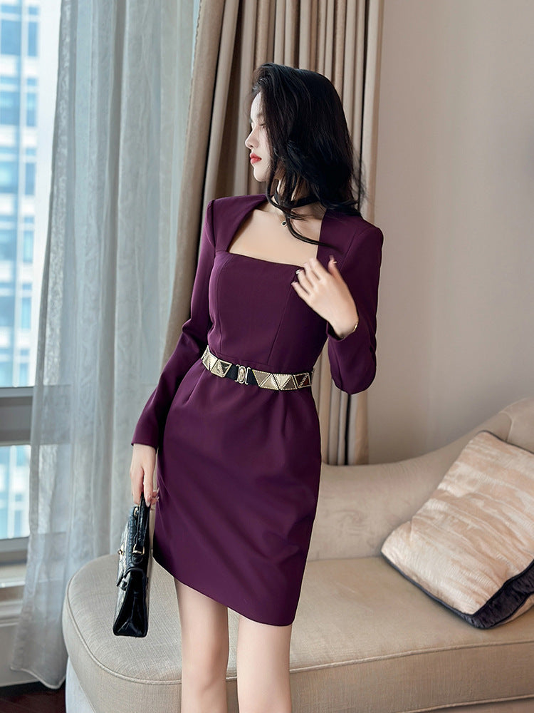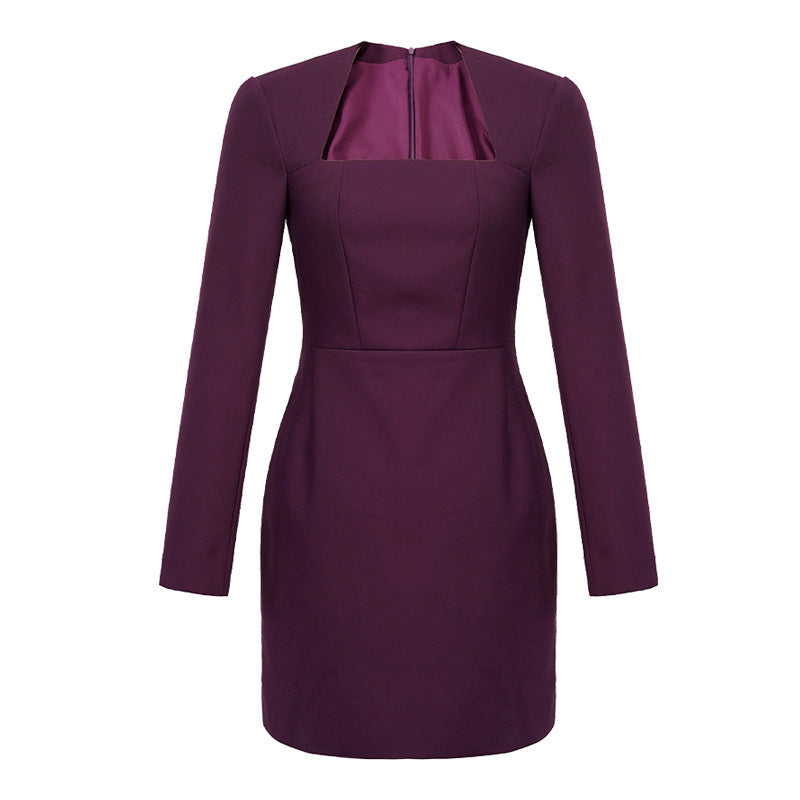 Autumn And Winter Women's Elegant Square Collar Slimming Dress