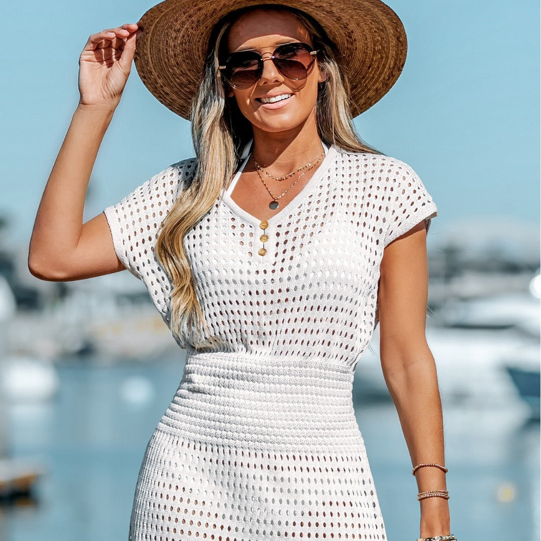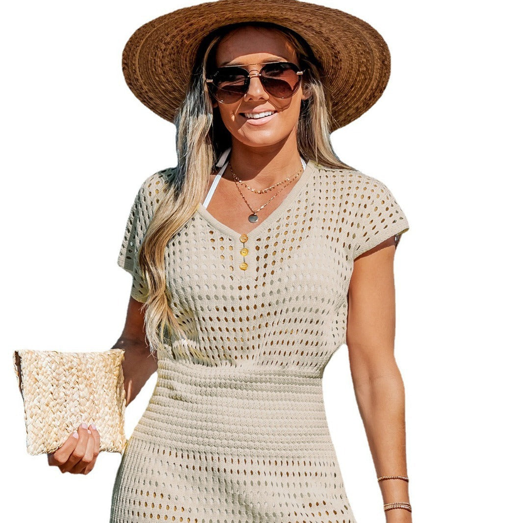 Beach Dress Women's Seaside Vacation Bikini Swimsuit V-neck Blouse Sun-protective Clothing