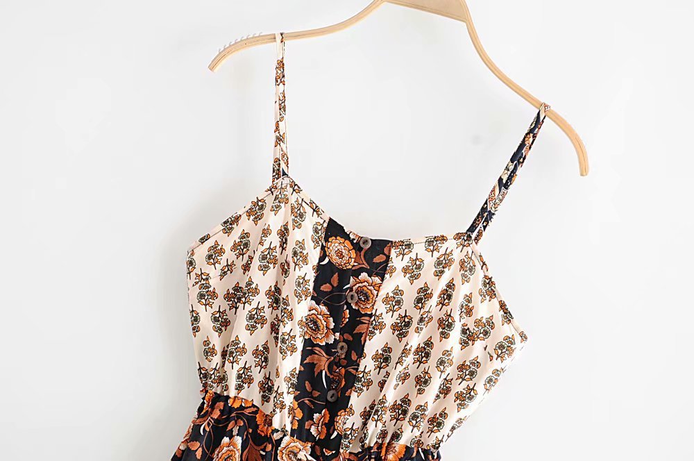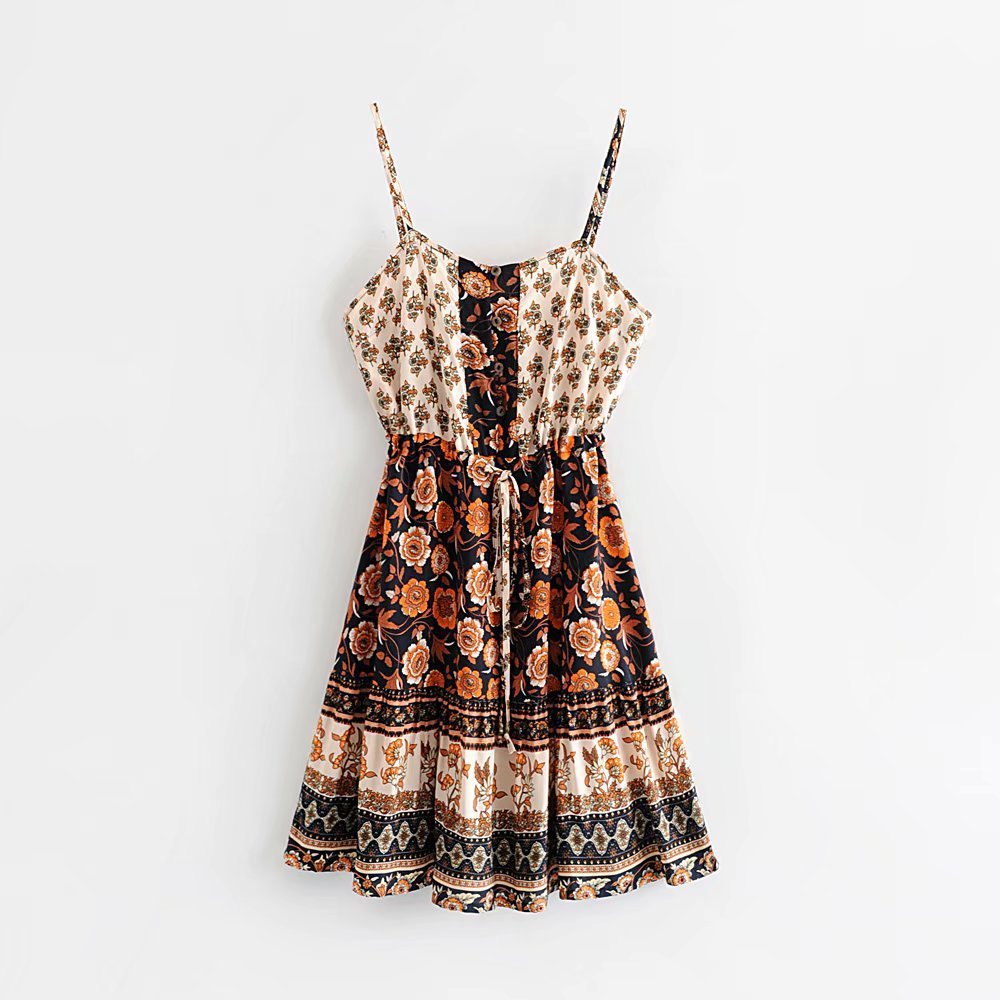 Boho style summer dress, cotton spaghetti strap dress, boho chic casual dress, high-waisted boho sling dress, boho-inspired printed dress, lightweight casual summer dresses, cotton boho beach dress, vibrant boho patterns dress, boho style comfortable dress, casual boho cotton dress.