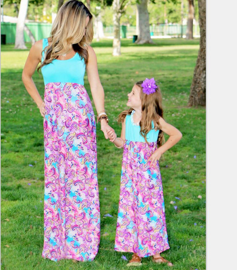 Cashew Phoenix Print Dress Mother And Daughter Parent-Child Wear