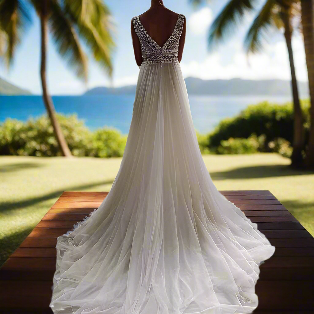 - Skirt: Long and flowing, ideal for outdoor and beach weddings.