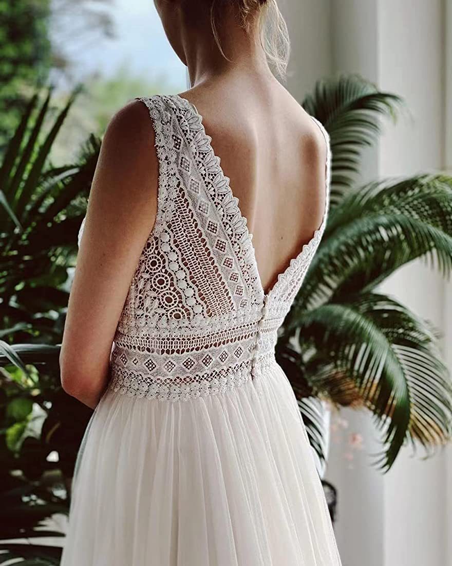 - Style: Boho-inspired wedding dress with intricate lace detailing.