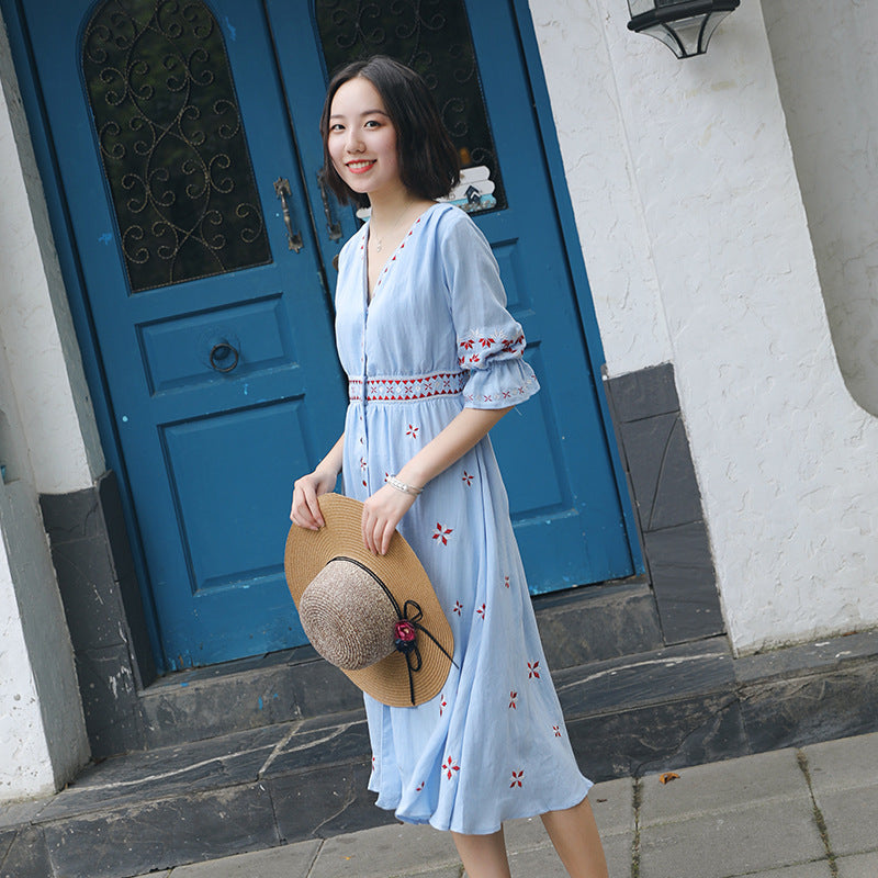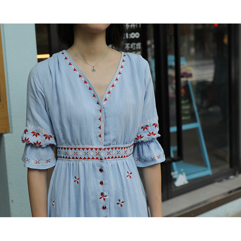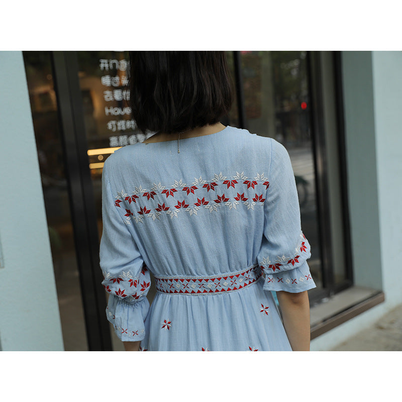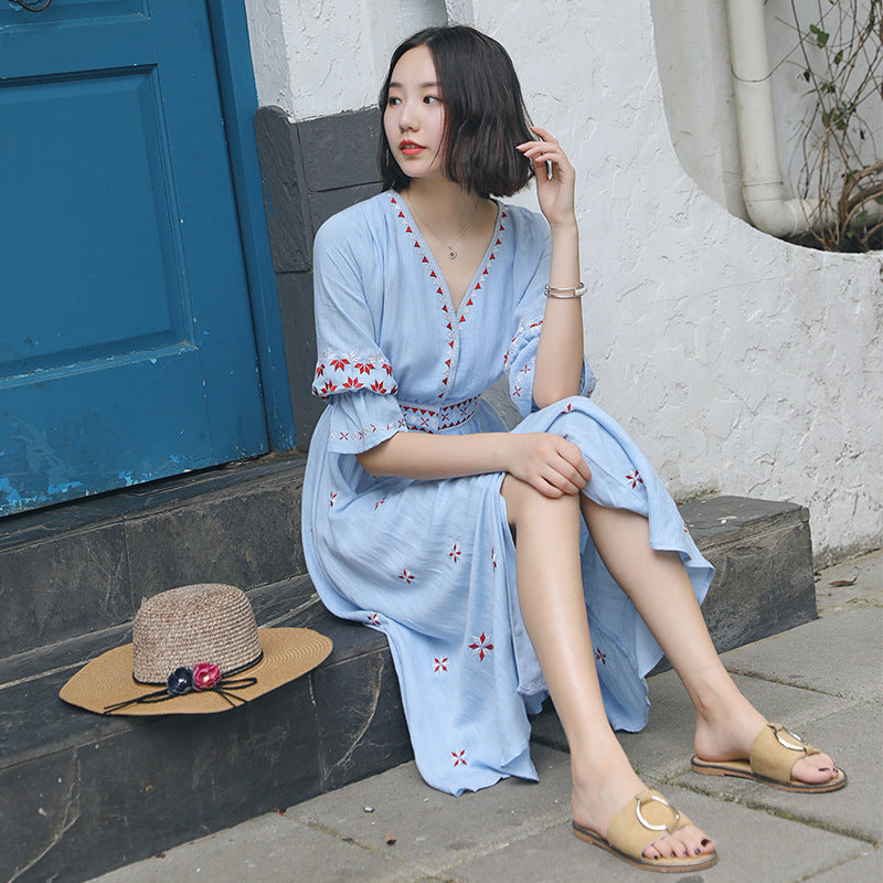 Ethnic Boho Embroidered Dress Women's Beach