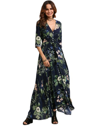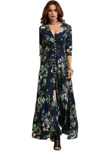 new women's European and American explosion models ethnic style printing retro bohemian big dress dress long skirt