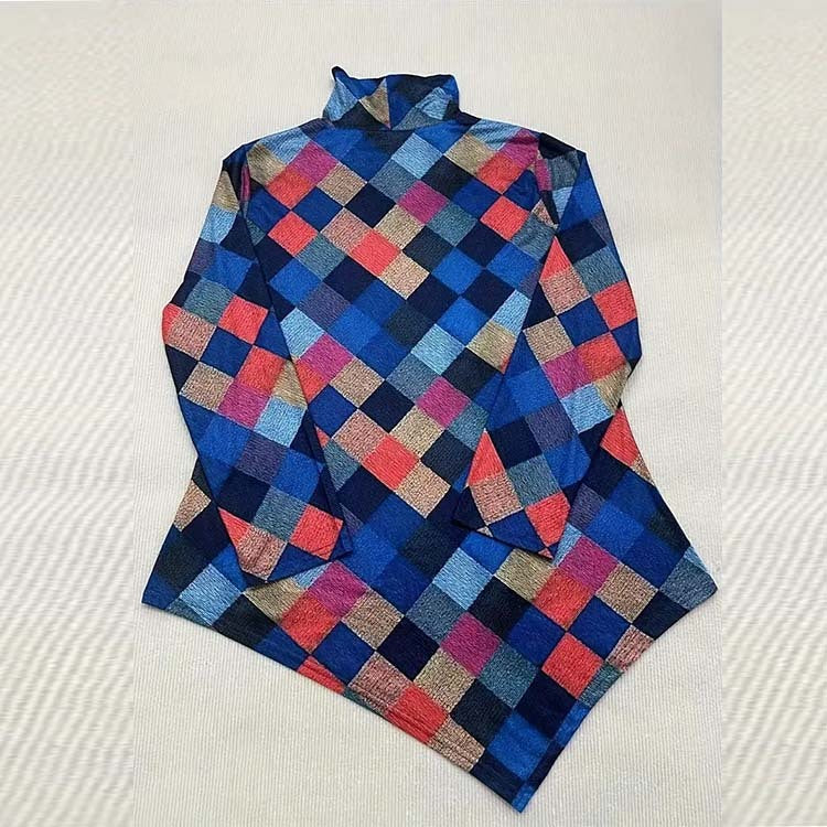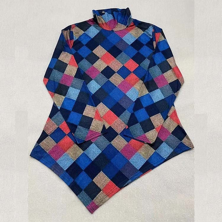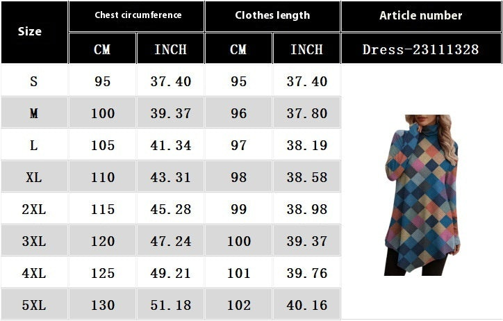 Retro Color Tartan Skirt Turtleneck Long Sleeve Dress