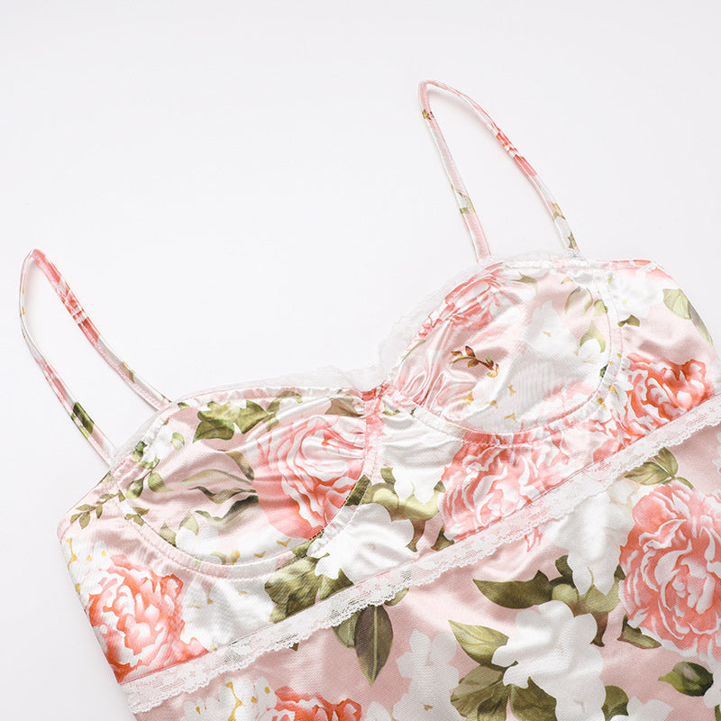 Spring NEW Long Elegant Printed Lace Suspender Dress Women's Clothing
