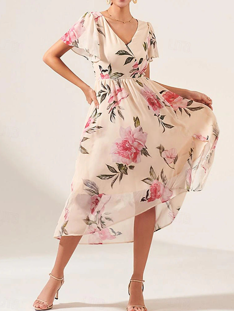 Floral A-line dress, 3D floral dress, plant pattern dress, mid-waist dress, short sleeve dress, polyester dress, casual floral dress, stylish floral dress, mid-length dress, floral dress for any occasion, buy floral dress online, www.buyadress.com.au