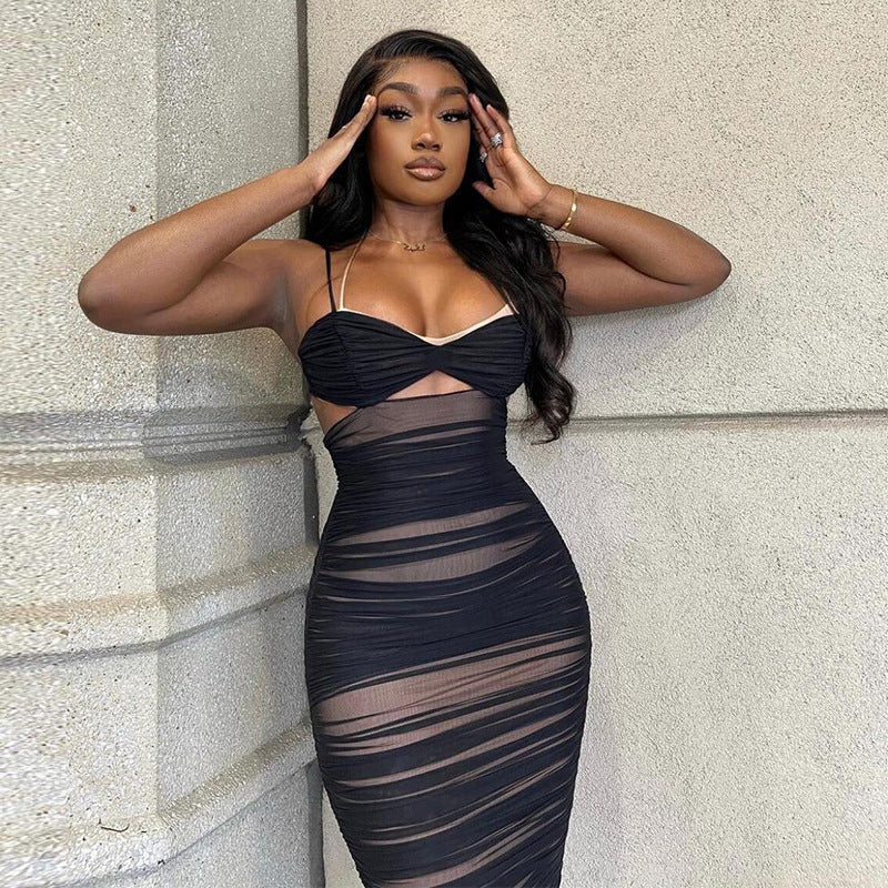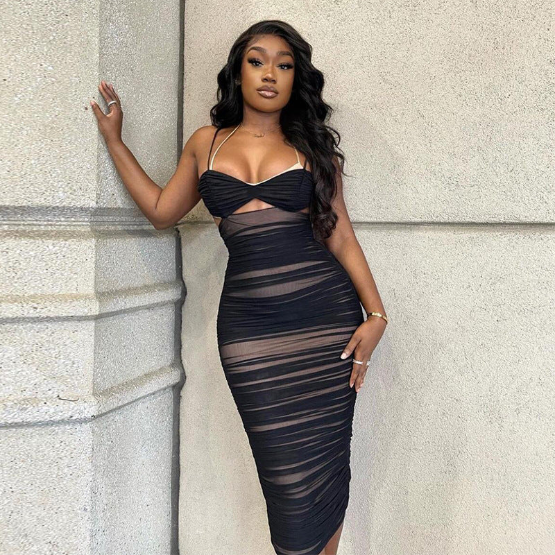 Discover our stunning Black Ruched Dress, expertly designed to enhance your figure and make a bold statement. Crafted from premium polyester fiber, this dress offers a flattering and comfortable fit with its lightweight, sheer fabric that hugs your body in all the right places. Whether for a night out, date night, or any special event, this classic black dress is a necessary addition to every wardrobe. Elevate your fashion game with this versatile and sophisticated black bodycon dress – shop now and exude confidence! Summer is approaching, get ready to impress!