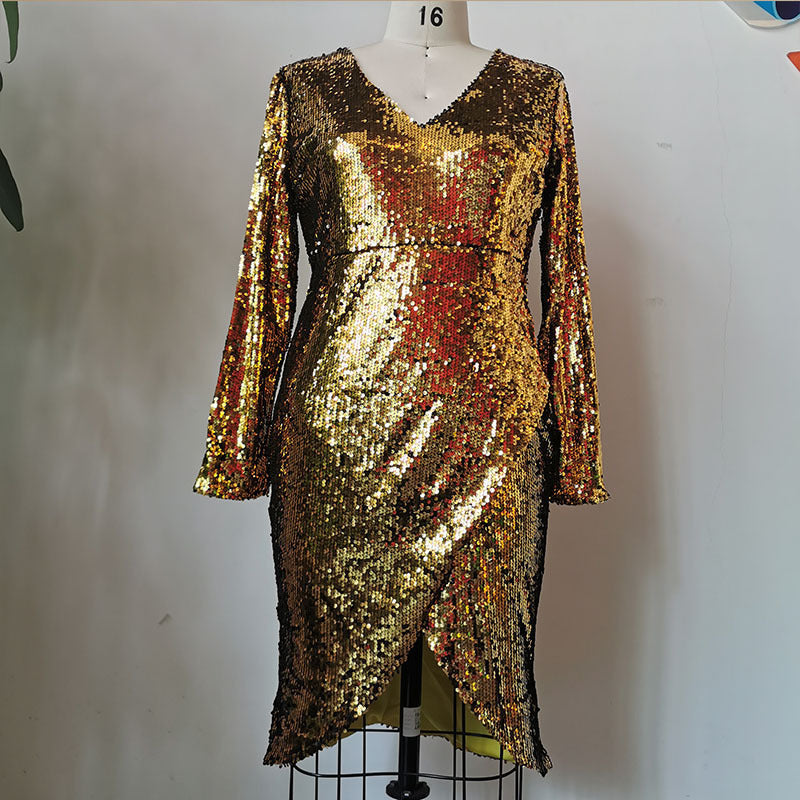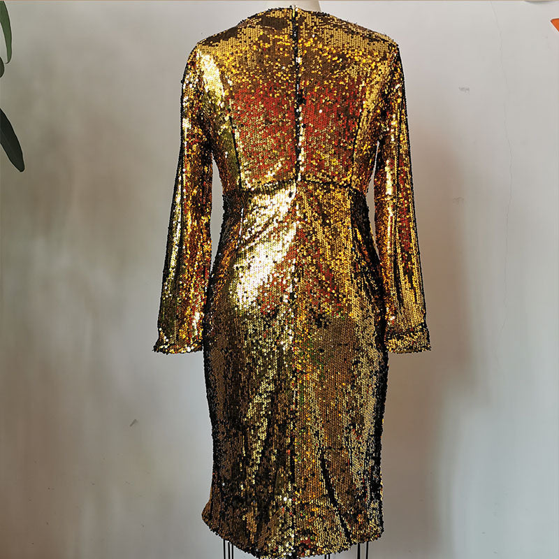Women's Fashionable Sequins Mid-length Sheath Dress