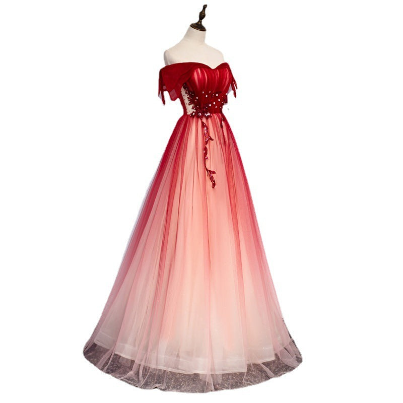 Women's Long Fairy Starry Sky Gradient Red Tube Top Dress