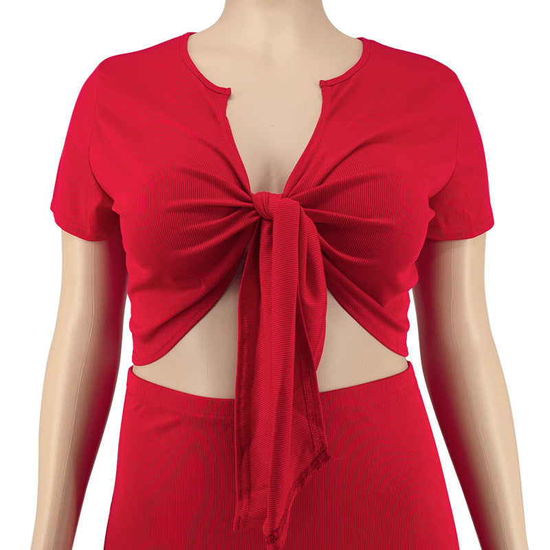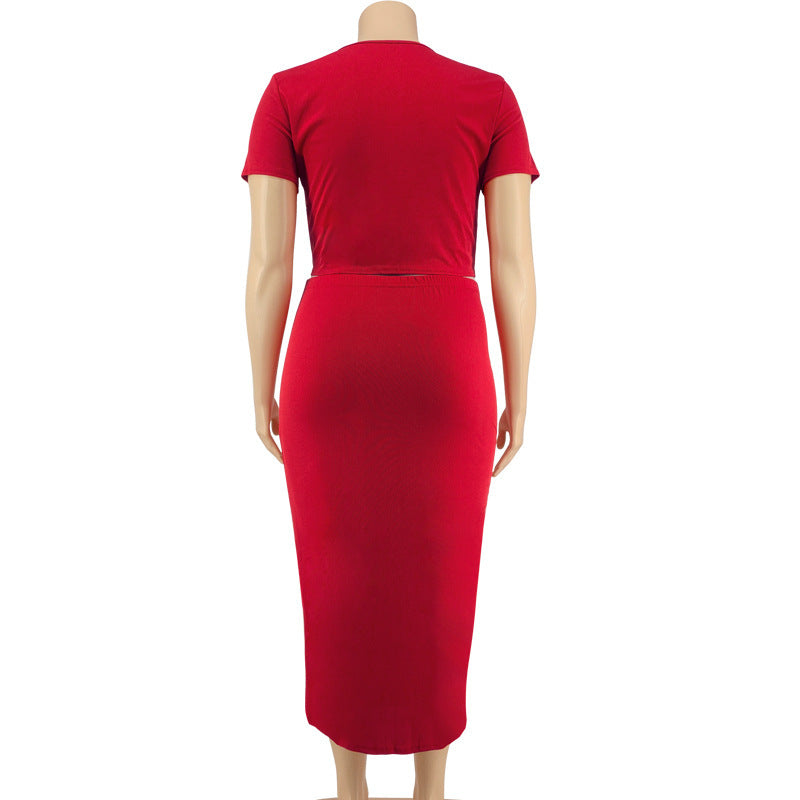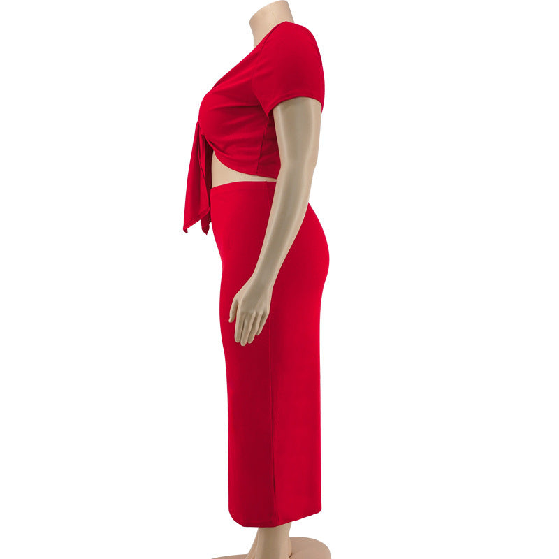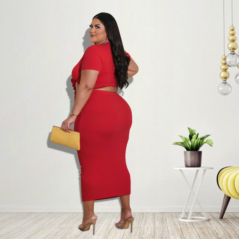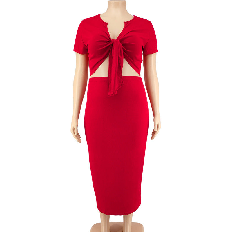 Women's Midriff-baring Top Mid-length Dress Set