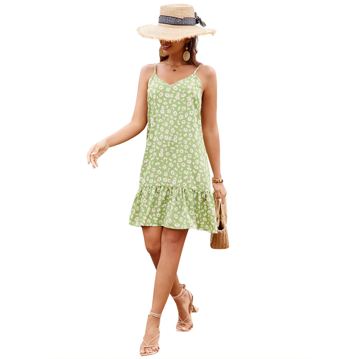 Women's Small Floral Vacation Spaghetti Straps Dress