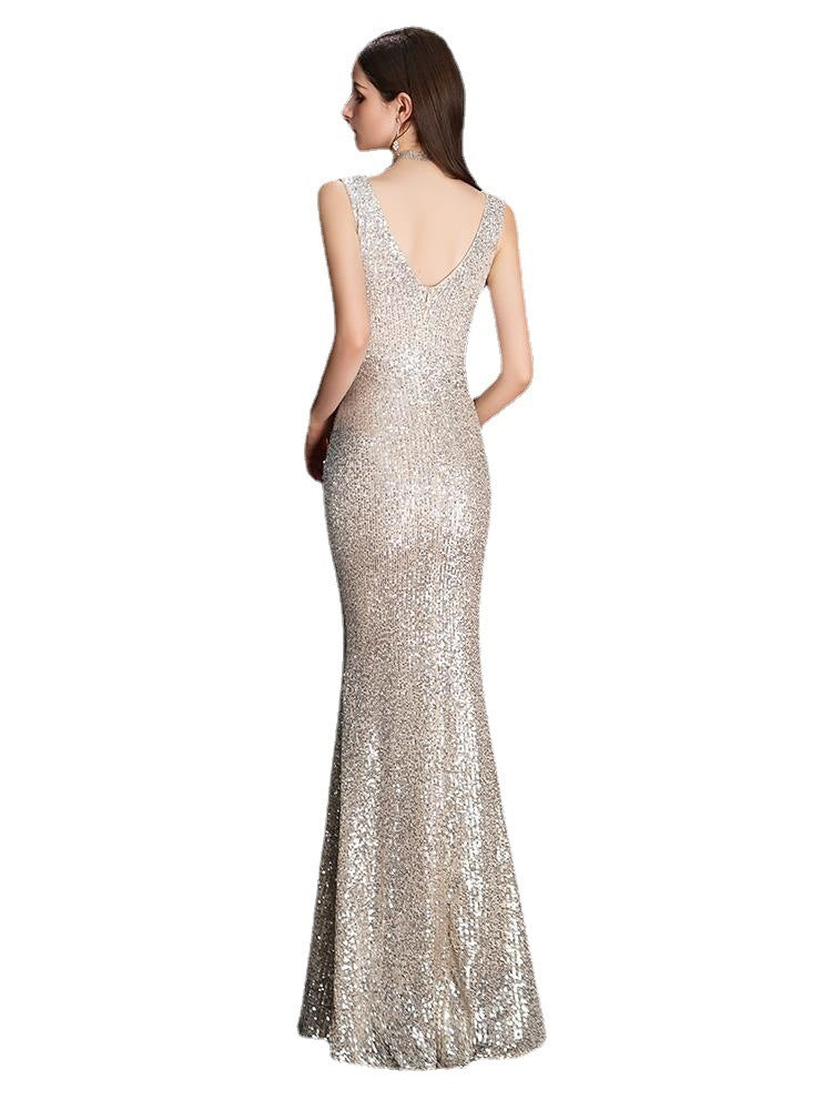 Women's Spring Sequined Fishtail Slim Sexy Evening Dress Dress